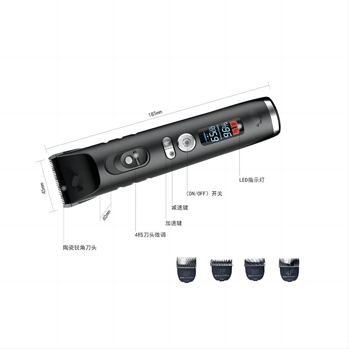 • Lo schermo LED ad alta definizione visualizza il livello della batteria in tempo reale, prevenendo interruzioni di corrente durante la toelettatura e garantendo servizi di toelettatura a casa o in salone più fluidi.